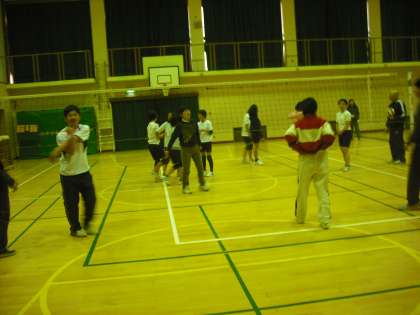 今日の交流はバレーボールです。教職員チームも頑張っているのですが,子どもたちの練習の成果はすごいですね。
