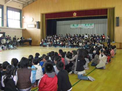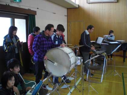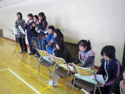 全員合唱「世界が一つになるまで」では,教職員も楽器で参加しました。子どもたちの元気な歌声に助けられました。
