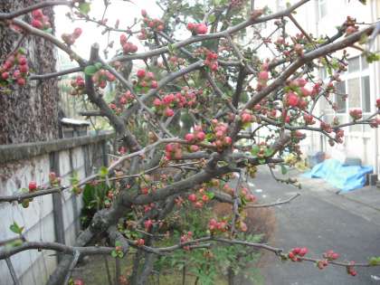 ボケの花が一輪咲きました。これからたくさんの花が咲いてきます。すっかり春ですね。