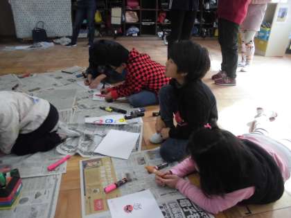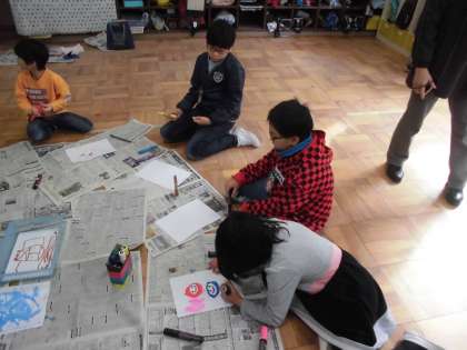 合同作品のマンションの外壁に貼る絵を描いたり,折り紙を折ったりしています。