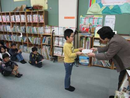 最終回なので,校長先生より土曜学習に熱心に取り組んだことに対して参加していた子どもたちに表彰状が手渡されました。子どもたちはたいへん喜んでいました。
