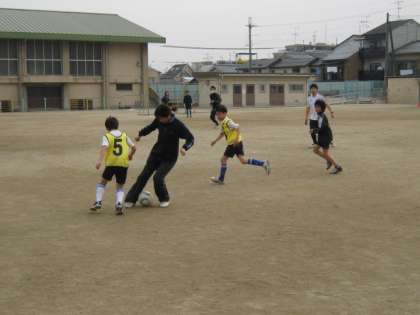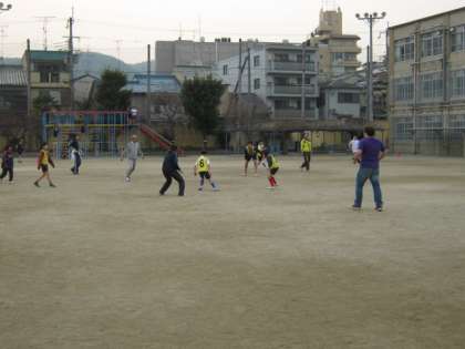 部活動の教職員との交流もいよいよ最後です。前回,雨で流れたので本日実施しました。ALTのセバスチャン先生も参加してくれました。ボールを追いかける教職員の方も必死です。卒業を前に6年生にとってはよい思い出となったことでしょう。