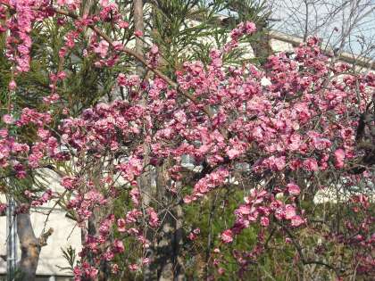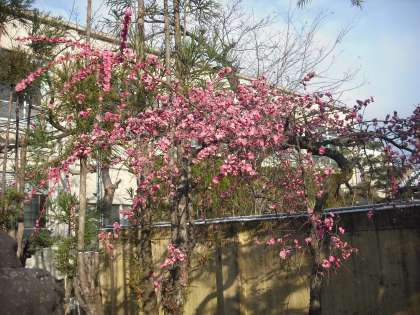 枝垂れ梅が満開です。花が散る頃,今度は桜がつぼみを膨らませてくれることでしょう。今年は桜のつぼみもかたく,開花がおくれそうな気配です。