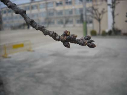 名木100選になっているソメイヨシノのつぼみはまだまだ固く,開花ませ時間がかかりそうですが,中庭のソメイヨシノはずいぶんつぼみが膨らんできています。