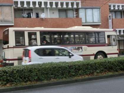 たくさんの保護者や教職員に見送られ,大きな荷物を持ってバスに乗り込みました。