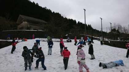 雪中ハイクのあと、雪遊びをしました
