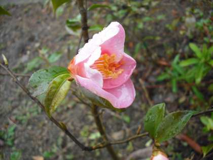 校門付近の椿の苗木に花が咲きました。苗木なのでこれからの成長が楽しみです。