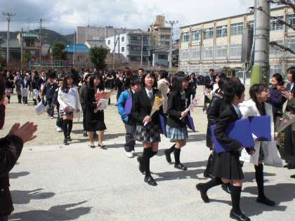 卒業生のみなさん,ご卒業おめでとうございます。これからも明るく元気に暮らしてください。さようなら,お元気で!