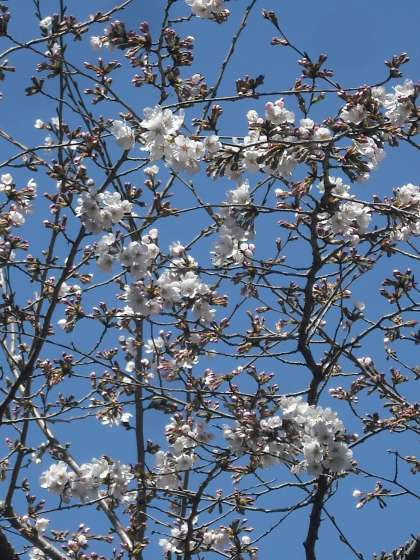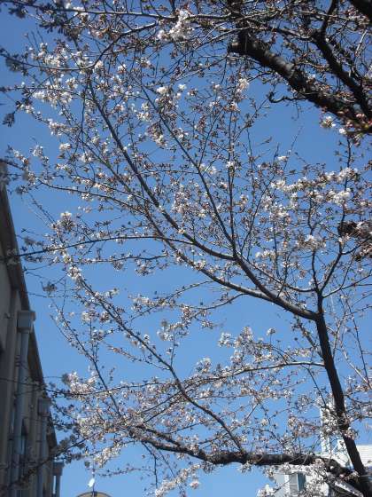 本館東側のソメイヨシノが陽にあたって,朝より開花が進んでいます。