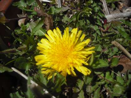 みかんの木の植木鉢にタンポポが咲きました。どこからか種が飛んできたのでしょう。
