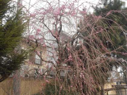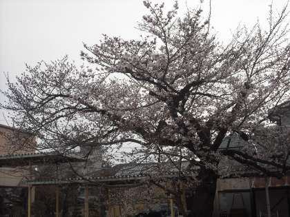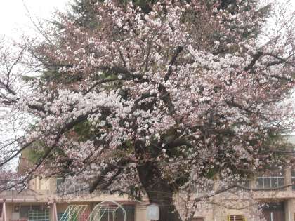 おはようございます。4月7日(木)の桜の様子です。運動場西側の枝垂れ桜もちらほら咲きはじめました。
