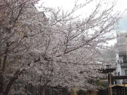 中庭のソメイヨシノが満開状態です。