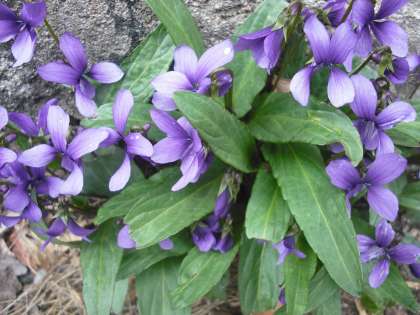 スミレの花がいっぱい咲いています。スミレ(菫)は,スミレ科スミレ属の植物の総称ですが,狭義にはViolamandshuricaという種の和名です。