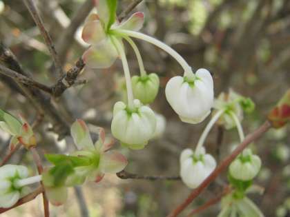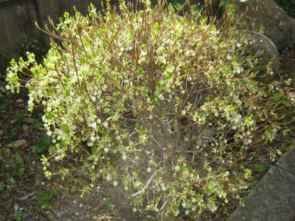 ドウダンツツジに白い花が咲きました。花期は葉が出てから約1週間後(4月上旬〜5月中旬頃,地方によって違う)。花は,白色,釣鐘のような感じで5mm程の大きさです。