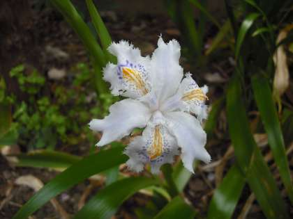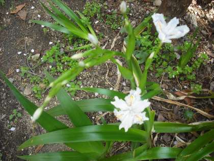 シャガの花が咲き始めました。開花期は4〜5月くらいで,白っぽい紫のアヤメに似た花をつけます。