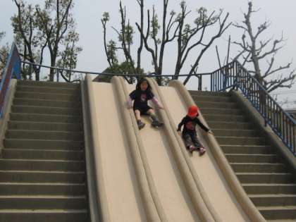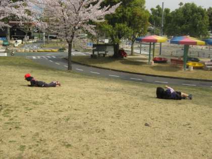 今日は暖かくよい天気なので,大宮交通公園へお散歩に出かけました。満開の桜がとてもきれいだったよ。