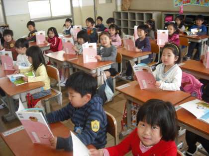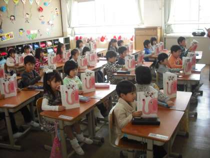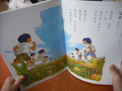 「はる」の詩を,元気な声ではっきり読んでいます。また,絵を見て,気付いたことを出しあっています。