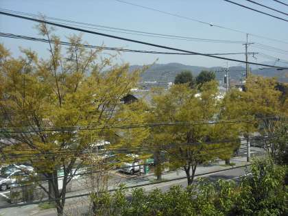 北山通の中央分離帯に植えられているケヤキが新緑に輝いています。