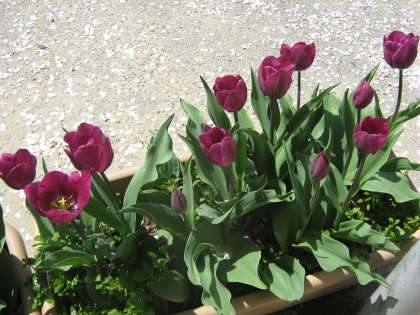 赤・白・黄色のチューリップは咲いていましたが,ようやく,紫色のチューリップが咲きはじめました。色によって咲く時期が違うようですが,色の違いは品種の違いですから当たり前のことですね。