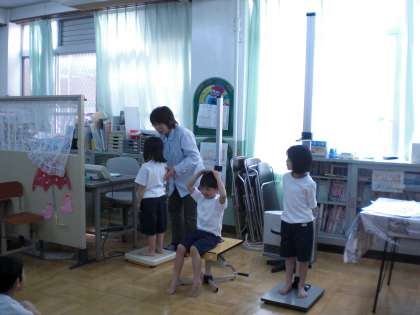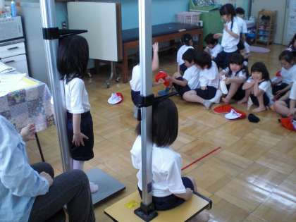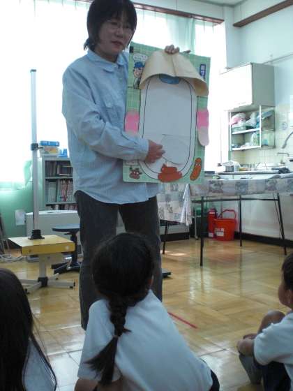 1年は、保健室のマナーと和式便器の使い方と発育測定の注意を学びました。