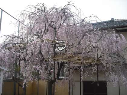 枝垂れ桜の花びらの色も白っぽくなってきました。そろそろ散り始めそうですね。