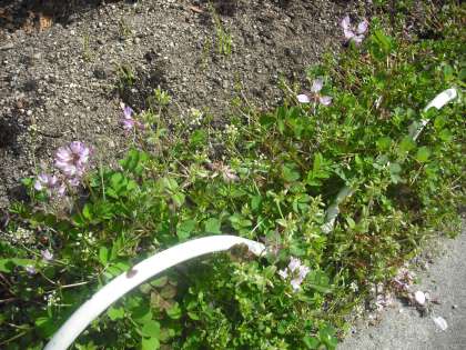 蓮華の花が咲きました。たくさん種をまいたのですが,間違って耕してしまいました。一部が残って花を咲かせました。