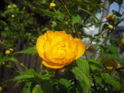 山吹が1輪咲きした。山吹のつぼみがいっぱいついています。これから楽しめますね。