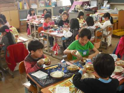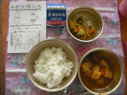 今日はみんなの大好きなカレーです。残さずしっかり食べようね。