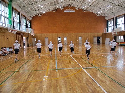 音に合わせて,一生懸命に走っていました。昨年よりも,記録が伸びた人が多かったようです。