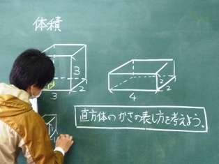 今日は、1立方センチメートルのブロックを使って、直方体の体積を求める学習をしました。となりの友達と協力して、小さなブックを積み重ねて、直方体の中にブロックがいくつ入るかを調べました。