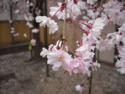4月22日(金)の桜の様子です。今日は雨の予報です。枝垂れ桜も花びらが落ちてしまいそうですね。