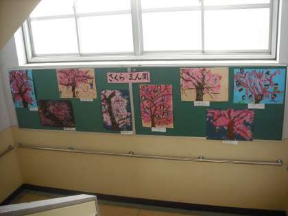 図工の時間に描いた「さくら」の一部です。桜の季節は終わりを告げようとしていますが,教室では桜が満開です。