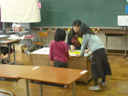 今日は授業参観日。先生と3人で楽しくお勉強しています。