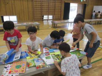 たくさんの本の中から欲しい本を選んでしおりをはさみます。