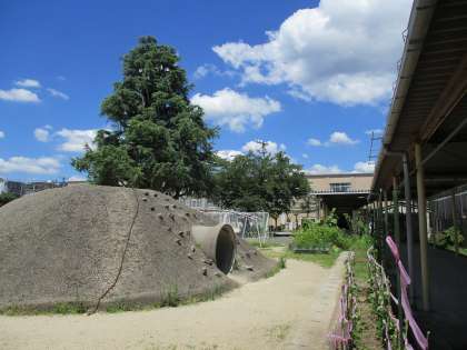 支柱を立て,部活動終わりの子どもたちに手伝ってもらい,つるを巻きつけました。