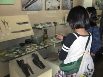 昔の遺跡から発掘されたたくさんのものが展示されています。資料館の方からも説明を聞きました。人間の知恵ってすごいですね。