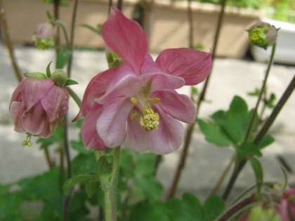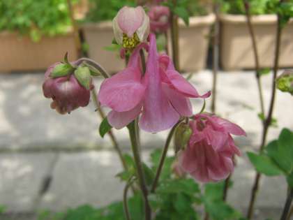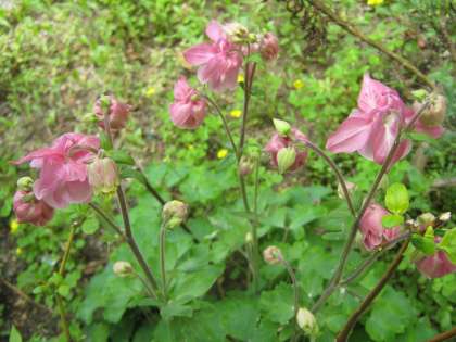 オダマキの花が咲いています。オダマキの名前は,中心を空洞にして巻いた麻の糸玉「苧環」に花の形が似ているところから付けられました。花が開いた形と言うより,つぼみの形が苧環に近いと思います。