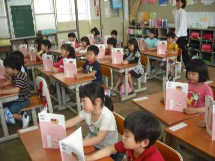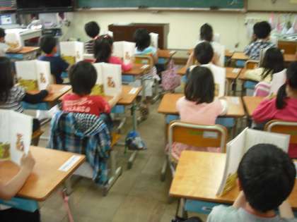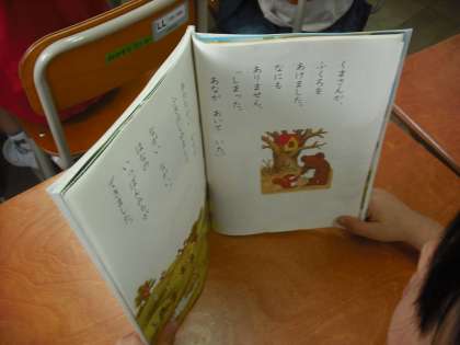 語のまとまりや言葉の響きなどに気を付けながら声に出して読んでいます。読んでる姿勢も声もとってもいいですよ。