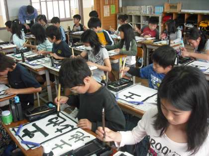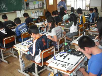 今日は「土地」と書いています。みんな落ち着いて,しっかり書けています。さすが5年生ですね。