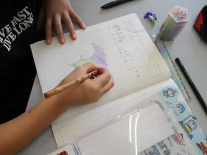 アサガオの花のつくりはどうなっているのかを知るために,花の中を開いて調べたり,おしべとめしべに花粉がついているのかを調べたりしました。