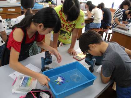 顕微鏡で見ると花粉がはっきりと見え,驚きの声も!