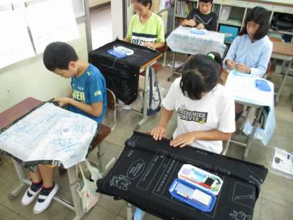久しぶりの裁縫に苦戦する子,すいすい縫う子など様々ですが,みんな一生懸命取り組んでいます。