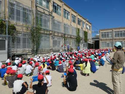 17日(火)昼休み、「自分たちの学校を自分たちで美しくしよう!」と「たて割りクリーン作戦」を行いました。1〜6年のたて割りグループを3つに分けて、学校内の石拾い・草引きに取り組みます。