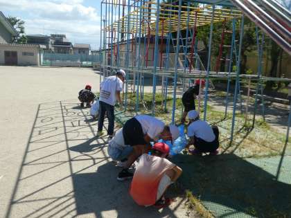 暑い中での作業でしたが、このあと開かれる運動会などを頭に置いて、テキパキと作業できたと思います。お疲れ様でした!