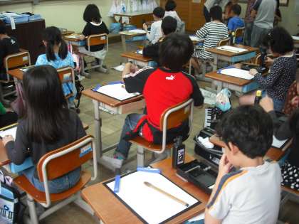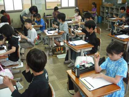 3年生から毛筆の学習が始まります。今日,はじめて毛筆を使いました。一と書いていますが,みんなちょっと緊張しています。
