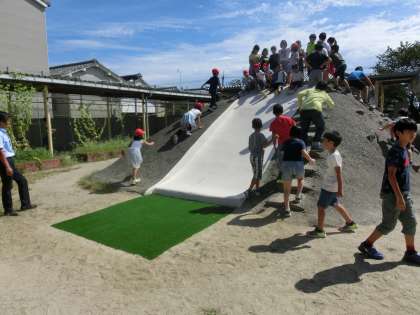 9月20日,待ちに待った築山滑り台のリニューアル・オープンとなりました。