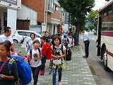 出発式を終えた5年生は、北山通りからバスに乗り込みました。見送りに来ていただいたみなさん、ありがとうございます。