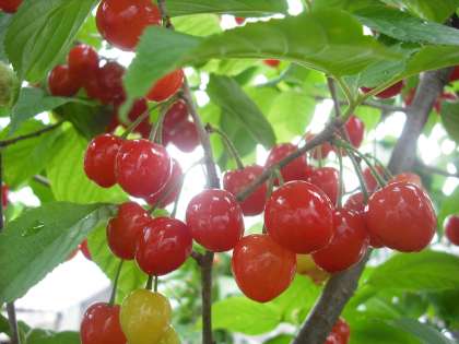 サクランボが赤く熟してきました。食べ頃ですね。