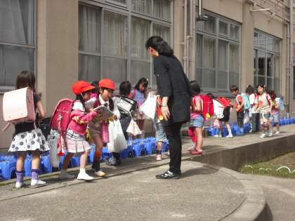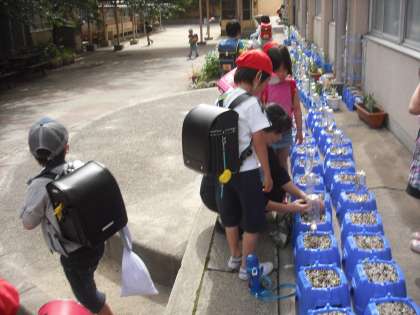 明日,明後日と学校はお休みです。そこで,帰る前に一杯水をやっています。大切に育てていますね。