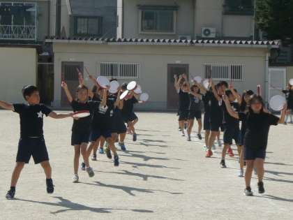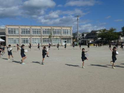グランドに、パーランク(手持ちの小太鼓)の音が響きます。2年生の団体演技、本番前の最後の練習です。